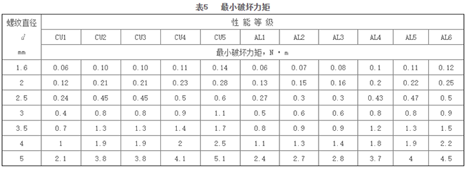 試驗(yàn)方法按GB /T 3098.10第7章進(jìn)行,測(cè)得數(shù)據(jù)應(yīng)符合表3-表5的規(guī)定