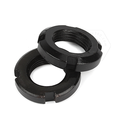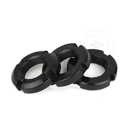 • 產(chǎn)品描述:GB812 圓螺母,又稱之為開槽螺母、軸承螺母、四槽止退螺母。GB812 圓螺母多為細(xì)牙螺母,常與圓螺母用止動(dòng)墊圈配用,裝配時(shí)將墊圈內(nèi)舌插入軸上的槽內(nèi),而將墊圈的外舌嵌入圓螺母的槽內(nèi),螺母即被鎖緊;或采用雙螺母防松。GB812 圓螺母僅用于滾動(dòng)軸承鎖緊裝置,標(biāo)準(zhǔn)規(guī)格范圍從M10~M200,材料為45#鋼。GB812 圓螺母具有精度高、硬度高、耐磨損、能承受較大的軸向力、防松動(dòng)、拆裝方便的特點(diǎn),GB